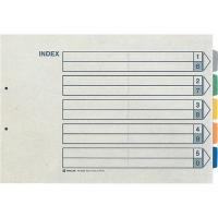 ■:A3 ■仕様:5色5山+扉紙 ■穴数:2穴80mm ■入数:10組 ■寸法:縦297×横430+見出し12mm ■材質:再生紙(古紙配合率50%) ■注文単位:1冊(10組) ■ー購入法適合 ■GPN商品ねっと掲載