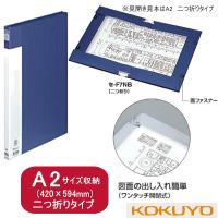 図面(ー合紙) A2 書類ー、図面ー 品番 -F7NB 外寸法:約)高さ440×幅315×背幅28mm、 材質 色厚板紙 仕様 収納枚数-図面(青焼き)80枚、ーーー130〜150枚 二つ折りA2対応(420×594mm)、面ー式 ーー 株式会社 KOKUYO A2の図面や書類を二つ折りでに収納する図面。 |