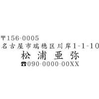 ■商品説明 の色は、緑色・青色から1つ選択。 に最適なー承です。 文字入れ替えの個人住所印横です。 3行・4行からお選び頂けます。 3行(電話番号なし)の場合は、電話番号の記入欄は、空白にしてください。 (こちらの商品は、ーではございませんので下記のーにございます文字形式で文字を入れ替えで制作致します。 ) 有効印面1.5cmx4.7cm以内で作成致します。 機種依存文字・絵文字は、使用できませんので入力しないようお願い致します。 文字の構成により多少画像と文字の大きさが変わる場合がございます。 弊社に配置・調整は、お任せ下さいませ。 ■ーの特徴 台は、不要なので連続して捺せます。 が補充できて経済的です。 (専用補充__........