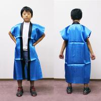お祭りや、売り出し販促用に不可欠のはっぴー。 運動会や学園祭でも人気の商品です。 はっぴ 1 枚 ・ 1 本 小・中学生用 身巾:57cm/身丈:90cm/:4.5cm×140cm 身長:110cm 小・中学生用着用 大人用もあります。