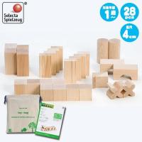 セレクタ社 SELECTA BLOCKS・スターターセット・小 です。 フレーベルの考え方を基礎にした基本的な積木セットです。 お友達や兄弟、数人でも遊べるように工夫しました。 セレクタ社で制作している積木のロングセラーです。 一つ一つ基尺(4cm)が精巧に作られているので、大きな作品が作れます。 お片付けに便利な厚手のコットン製のトイバック(小)が付属します。 ■基尺 4cm(28個入り) ■対象年齢 1歳〜 ■付属 トイバック(小)、積み木遊びのガイドブック付き ■材質 カエデ ■メーカー SELECTA(セレクタ)社 ■CE ヨーロッパ安全規格、おもちゃ安全基準「EN71」適合品 お子様がなめても安全なワックス塗料を使用しています。