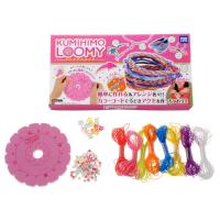 ご注文の当日〜翌日(土日祝日,当店休業日を除く)に発送! 簡単に作れる&アレンジ色々 カラーコードで今どきアクセを作っちゃおう! クミヒモルーミーは、カラーコードをセットしてスリットに順番にはさむだけで、オシャレでかわいいブレスレットやヘアゴムが作れちゃうすぐれもの。 丈夫で伸縮性にも優れているので、靴紐などにも利用できます!カラフルで可愛い手作りアイテムを作っちゃいましょう! ≪作り方≫ 1.カラーコードをセットしてスリットに順番にはさむと・・・ 2.どんどんルーミーができてくる! ≪作れるアクセサリー≫ ブレスレット、ヘアゴム、ストラップ、くつひも、ヘアバンド、ヘアピン、ヘアゴム、ネックレス など 作る長さや最後の止め方を変えるだけで使い方いろいろ!! セット内容:LOOMYプレート、カラーコード6m×8本(サクラピンク、ネオンオレンジ、フレッシュグリーン、イエロー、スカイブルー、パープル、パッションピ.........__ |
