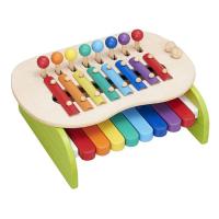 ■森のメロディメーカー ■カラフルな色合いで音と動きが楽しめる木のおもちゃです♪鍵盤を押すと、音と連動して丸いモチーフがぴょんぴょんと跳ね、目と耳で楽しめます。 ■また、天板の上に鉄琴が出ているのでバチでたたいて遊ぶこともできます。 強弱などの指先の訓練、創造力、発想力、指の動きと位置を空間的に認識し覚える力、メロディーを覚える力が遊びながら学べます。 ■鍵盤の色と音符の色が連動した楽譜付きです♪お誕生日祝いなどギフトにおすすめです。 対象年齢 1.5歳〜 セット内容 本体×1 スティック×2 サイズ等(約cm) 本体:w約36.2cm×d約28.7cm×h約15.5cm 重さ 約2.5kg 主な素材 天然木 ラッピング:OK メール便:NG