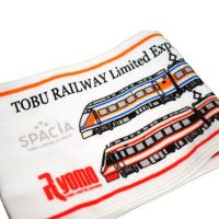 マフラータオルの特徴である長さを活用し、「東武の特急といえばこの車両!」と言われる「スペーシア」と「りょうもう」の正面と側面をデザインし、ロゴも入れました。