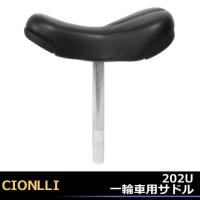 ■商品名:202U 一輪車用サドル ■カラー:ブラック ■メーカー:CIONLLI ■素材:樹脂/スチール ■重量:750g ■サイズ:前後 260mm x 幅 130mm x 厚さ 50mm ポスト径 : φ 22.2mm x 210mm ■特徴:・座面が厚く、前後に樹脂製のガードを装備した一輪車専用のサドルです。 ・本体座面はスポンジクッション材を表皮で包み込んでおり質感が高く、お尻に優しい設計です。 ・シートポストは前後に調整が可能です。 ・本体とシートポストを固定するネジにはキャップが付きます。 ■用途:一輪車の座席