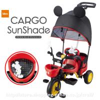 欲しい機能が全部入った人気のカーゴドームが、赤・黄・黒のカラーリング、ミッキーの耳の付いたサンシェード、グローブ型のサイドミラーが付いた、まるでミッキーのようなカッコイイ三輪車になって登場! サンシェードでUV99%カット、大きなリアバッグでベビーカーの代わりにお買い物やお出かけなどに使用したり、また公園まで押していって三輪車として乗って遊んだりと、日常のシーンに合わせて様々な使い方のできる三輪車です。 サンシェードやコントロールバーなどは取り外すことも可能ですので、子どもの成長に合わせて長く使っていただくことができます。