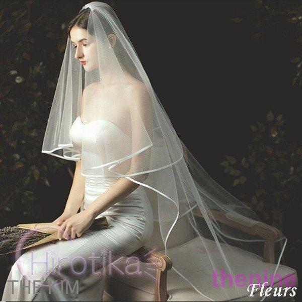 ウエディングベール コーム付き 2段ベール リボンエッジ ウェディングベール フェイスアップベール ロングベール ブライダル 結婚式 二次会 披露宴 前撮り