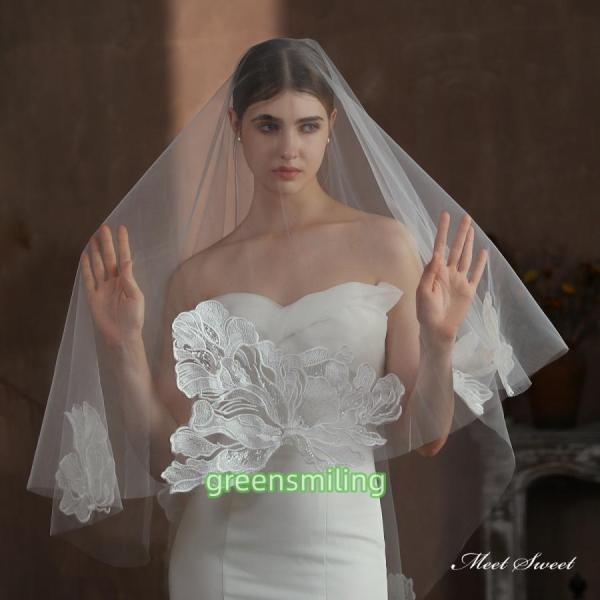 髪飾り ウェディングベール 1層 結婚式ロング丈ベール レース 刺? 花柄 優雅 気質コーム無し 豪華 ウェディングアクセサリー