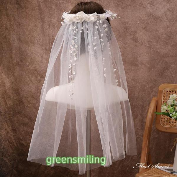 ウェディングベール ミドルベール 花冠ベール ミディアムベール フラワーベール 花冠 花かんむり 花輪 パーティー 撮影 ウエディングベール 結婚式 花嫁 二次会