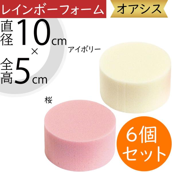 オアシス レインボーフォーム レインボーケーキ 人気 おすすめ おしゃれ スポンジ フォーム 吸水 給水 ベース 土台 アイボリー 桜 色付き 直径10cm 6個セット