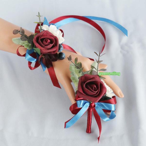 6色 ブートニア リストブーケ ローズ バラ ワインレッド 造花 ブライダル 二次会 結婚式 花嫁 披露宴 コサージュ 卒業式 卒園式 入学式 フォマール セレモニー