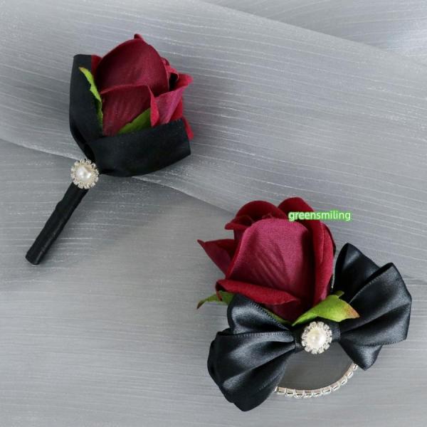 ブートニア リストブーケ ローズ バラ ワインレッド 造花 ブライダル 二次会 結婚式 花嫁 披露宴 コサージュ 卒業式 卒園式 入学式 フォマール セレモニー