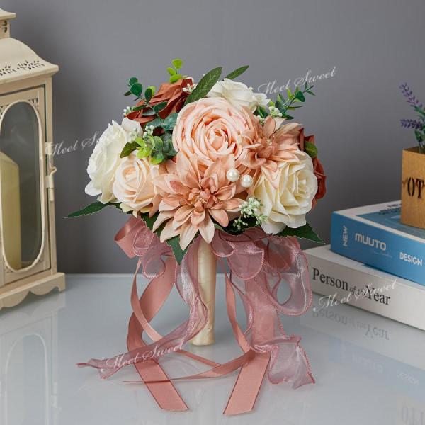 ウエディングブーケ 安い 二次会 結婚式 ローズ 造花 花飾り アレンジメント 花嫁 ブーケ 手作り ブライダルブーケ ハーフムーン ロケーション撮影