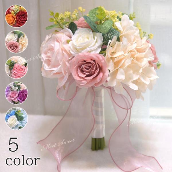ブーケ 造花 ウェディングブーケ ブライダル ラウンドブーケ ウエディングブーケ 花嫁 造花 可愛い 結婚式 二次会 シャンパン ピンク レッド ブルー パープル