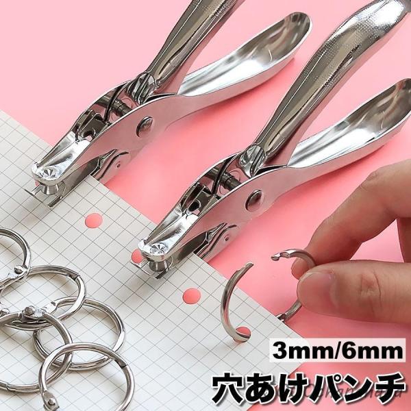 穴あけパンチ 1穴 3mm 6mm ハンディ 丸穴 ルーズリーフ ファイリング プリント 書類整理 事務用品 紙 ハンド 文房具 文具 まとめる 便利
