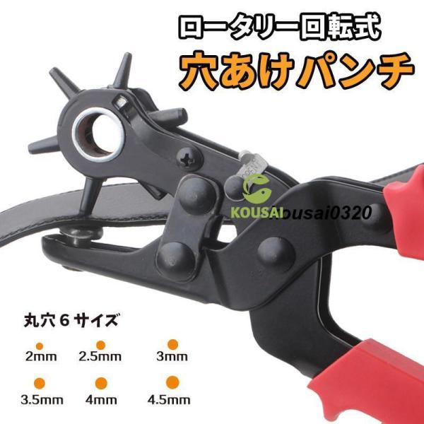 穴あけパンチ レザーパンチ 穴開け ベルト ロータリーレザーパンチ レザー 革 パンチ パンチャー 穴あけ 直径2.0-4.5mm 6段階調節 大きさ調節