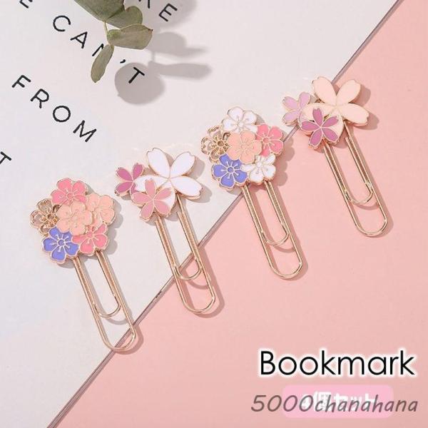 ブックマーク 4個セット しおり 栞 クリップ ゼムクリップ ペーパークリップ 文房具 ステーショナリー 事務用品 桜 さくら サクラ フラワー 可愛