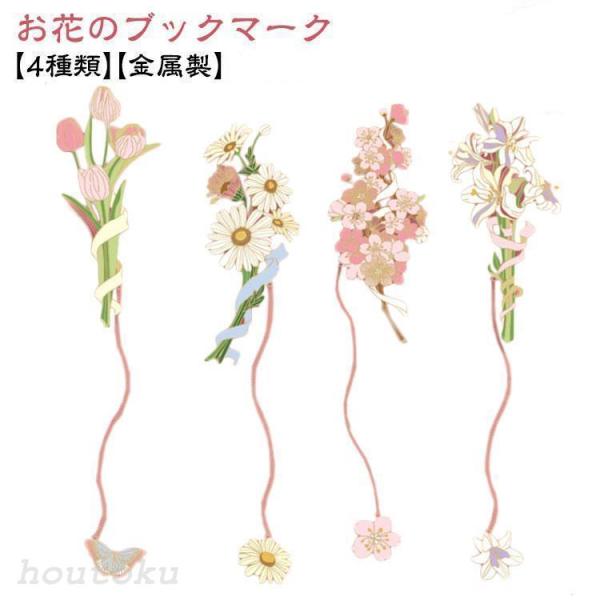 お花モチーフ ブックマーカー 金属 花柄 しおり 可愛い 女性 女の子 栞 レディース おしゃれ チューリップ 雛菊 桜 箱入り 金属 百合 レトロ