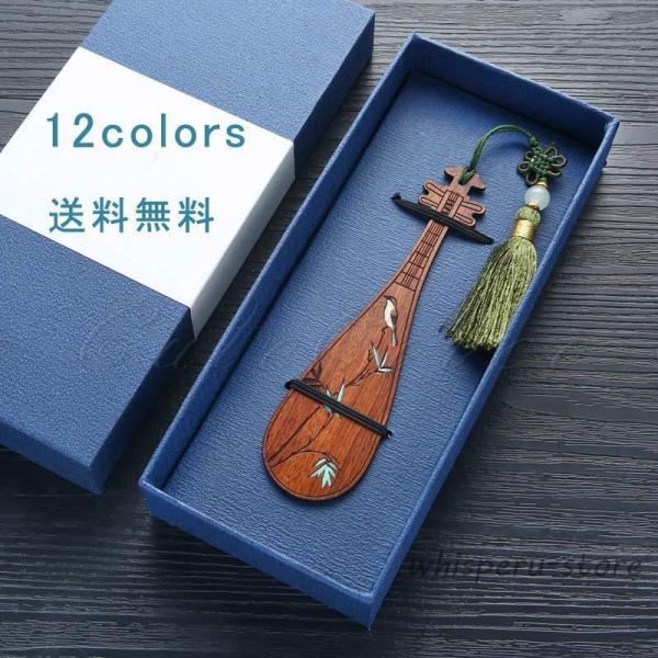 しおり 木製 楽器 ブックマーカー 本のしおり 記念品 景品 ペンダント 小物 プレゼントボックス 植物 花柄 フリンジ 紐 古風 中国風 本 読書 プレゼント ギフト