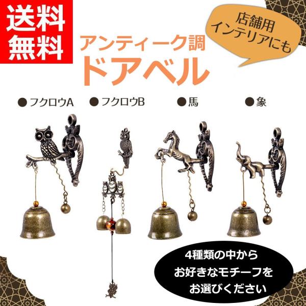 ドアベル ドアチャイム 玄関 おしゃれ 風水 呼び鈴 アンティーク調 フクロウ 象 馬 マグネット 磁石タイプ 縁起物