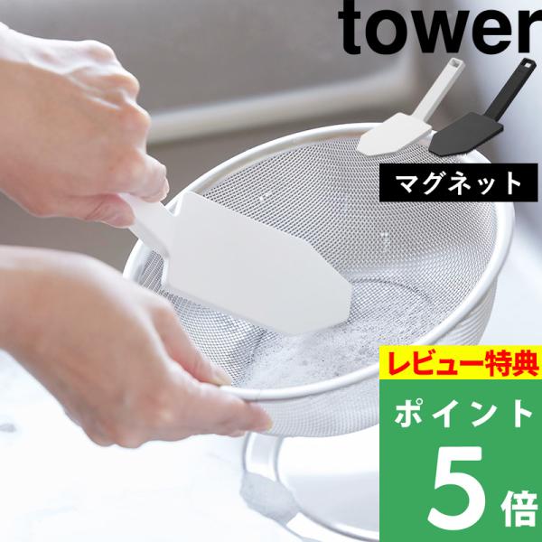 特典付[ マグネットハンドル付シリコーンスポンジ タワー ]山崎実業 tower シリコン 食器洗い 食洗機対応 yamazaki 公式 ブラック ホワイト 1885 1886