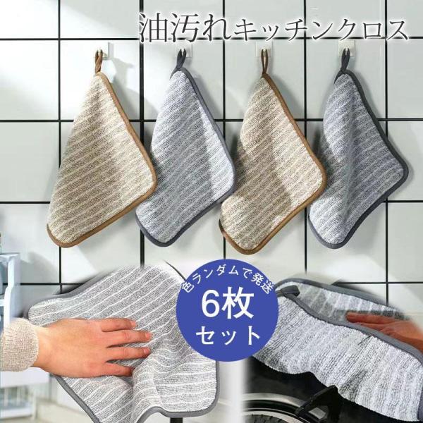 油汚れクロス 6枚セット 雑巾 布巾 キッチンクロス 台ふき レンジ 油汚れ ふきん マイクロファイバー クロス タオル ガスレンジ 掃除