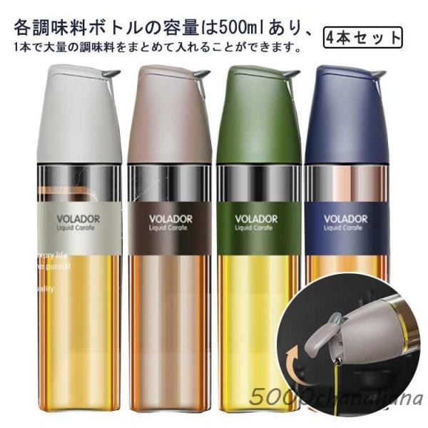 自動開閉 4本セット!オイルボトル ガラス 調味料入れ スタイリッシュ 片手 調味料ボトル 油入れ 醤油差し ドレッシングボトル オイル差し 醤油 酒