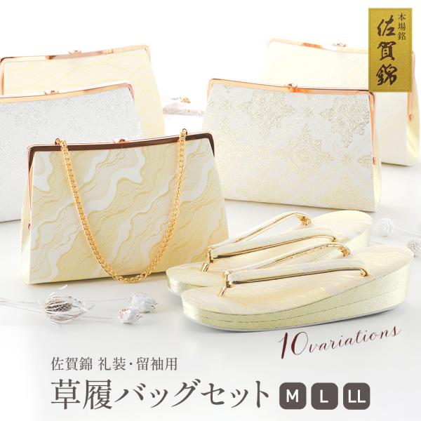 礼装用 フォーマル用 佐賀錦ブランド 草履バッグセット ゴールド シルバー 手提げバッグ・かかえバッグ 2Wayタイプ 日本製 M・L・LLサイズ 全10柄 sg-7