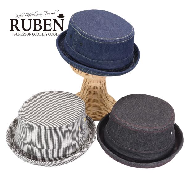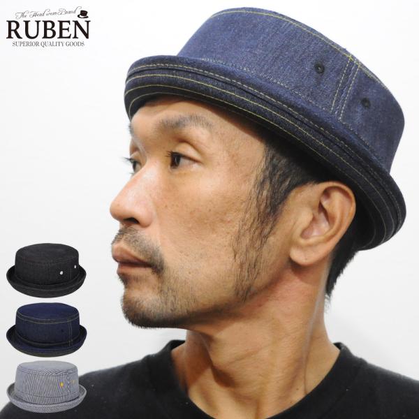 帽子 ポークパイハット メンズ レディース 春 夏 秋 冬 オールシーズン デニム ブラック ネイビー ヒッコリー ブランド ルーベン Ruben