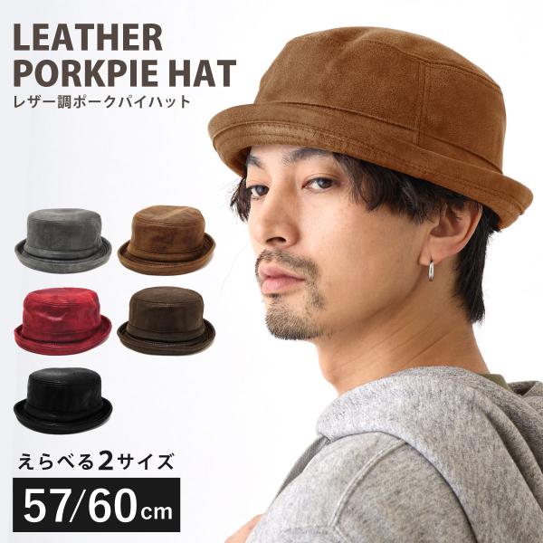 Y-020 ハット 大きいサイズ ポークパイハット メンズ 春夏秋冬 おしゃれ 40代 50代 60代 70代 80代 90代 フェイクレザーポークパイ 帽子 シニア 金古屋