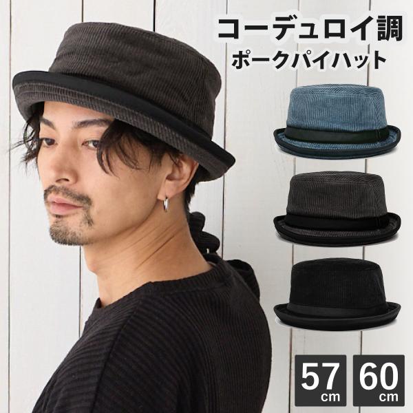 コーデュロイ素材 ポークパイハット 帽子 メンズ 秋冬 無地 大きいサイズ 60cm 57cm 暖かい hat-1506 2way ハット つば 短い 爆買