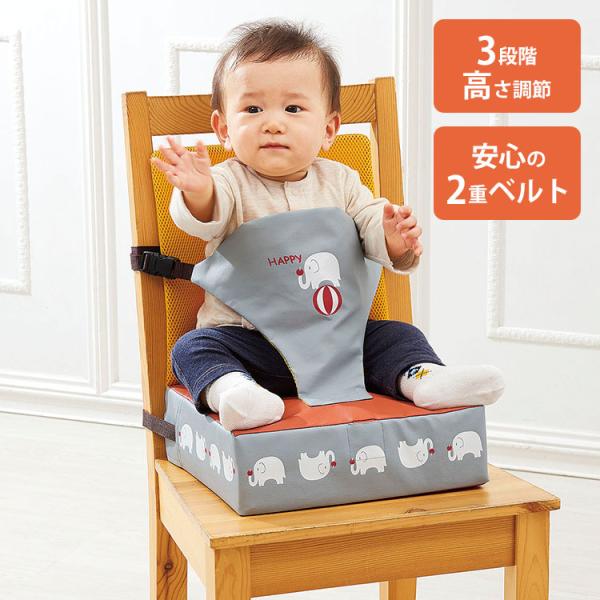 ホールドベルト付 お食事クッション エレファント 96670 高さ調整 2重ベルト ベルト付き ベルト取り外し可 10ヵ月〜 長く使える かわいい 赤ちゃん 幼児