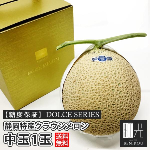 【あすつく対応(定休日除く)・送料無料】糖度保証 静岡産 クラウンメロン 中玉 1玉 DOLCEシリーズ 1.2kg前後 ギフト 内祝 果物 フルーツ お中元 高級 メロン