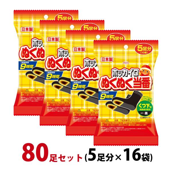 カイロ 貼る 足用 ホッカイロ ぬくぬく当番 くつ下用 80足セット(5足分×16袋) 使い捨て 靴下に貼る 使用期限:2026年4月