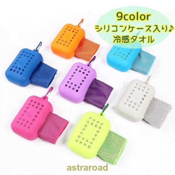 冷感タオル 冷却タオル クールタオル ひんやりタオル シリコンケース付き カラビナ付き キッズ 子ども 大人 熱中症対策 暑さ対策 冷たい アイスタオ 夏