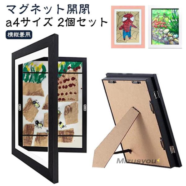 木製 アートフレーム 2個セット 子供の絵 収納 a4 額縁 マグネット ポスターフレーム 絵画 画用紙 フォトフレーム 保存用
