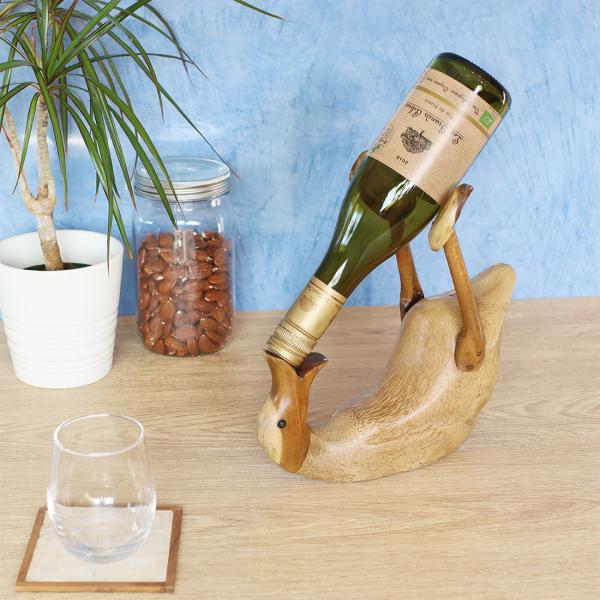 ボトルホルダー 木製 アヒル ワイン 鳥 家鴨 ディスプレイ ワインボトル おしゃれ かわいい ぐびぐび 癒し ユニーク雑貨 ダック 泥酔 酒飲み 酒豪 ワイン置き