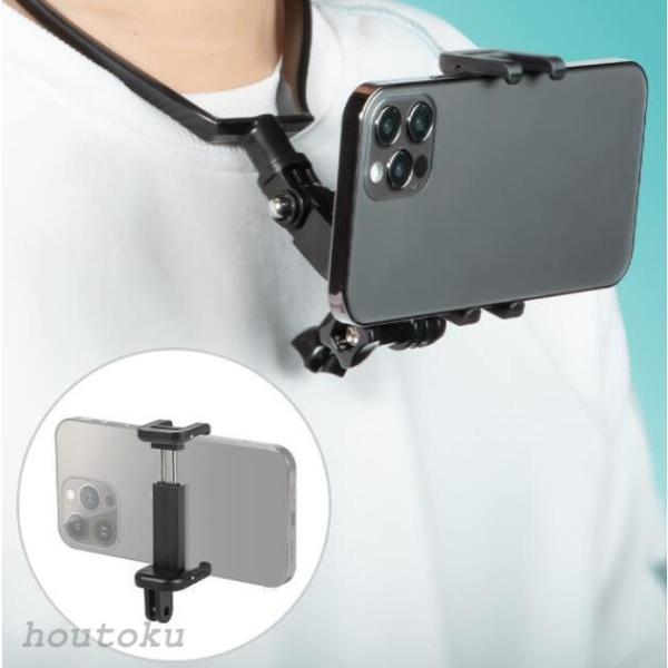 スマホ用iPhone13 12 mini Pro Max用GoPro 11 10 9 8アクション用ハンズフリーマウント 首 下げ ネックストラップ目線料理撮影アクセサリー