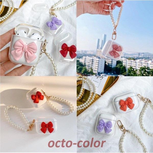 Airpods pro ケース 韓国 リボン パール 透明 クリア シンプル エアポッド エアポッズ プロ カバー 大人 かわいい おしゃれ イヤホンケース 女性 揃い