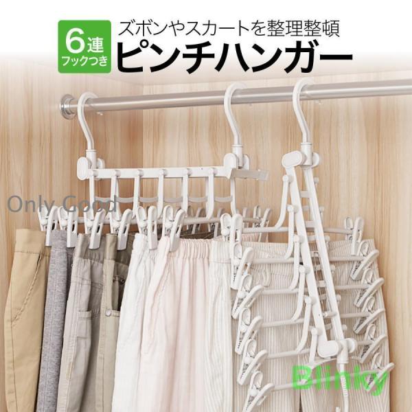 スカート ハンガー 6連 ズボンハンガー 連結 ピンチハンガー スラックスハンガー ズボン用 プラスチック ボトムハンガー おしゃれ 便利グッズ