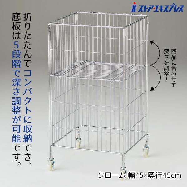 ワゴン バスケットワゴン 販売台 陳列台_ワイヤーワゴン クローム 幅45×奥行45cm キャスター 3/8w 1台_61-555-21-2_2330-45