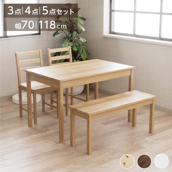 ダイニングテーブルセット 2人用 3点 おしゃれ ダイニングセット 4人掛け 4点セット 幅70cm 115cm 天然木 食卓テーブルセット 木製 ベンチ 椅子 チェア 北欧