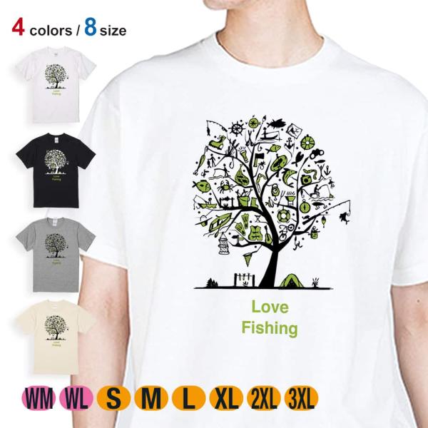 釣り Tシャツ 半袖 Love Fishing Part2 5.6oz 綿100% メンズ レディース 洗濯 大きいサイズ 白 黒 灰色 肌色 春 夏 秋 冬 オシャレ 釣り 魚 ルアー